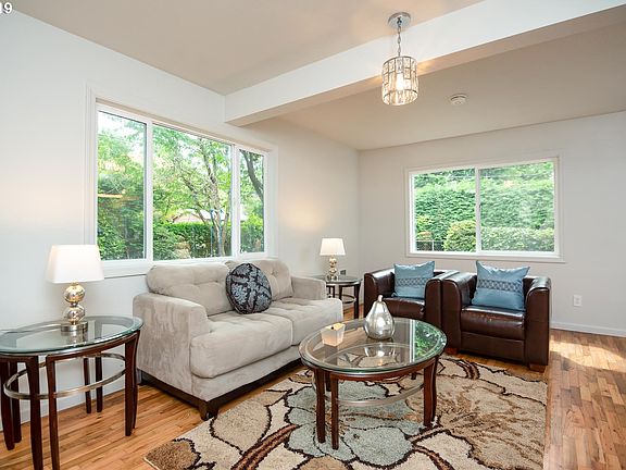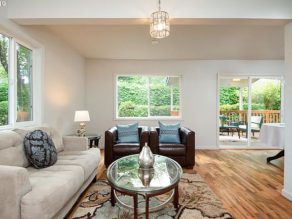 No surface untouched! Remodeled w/refinished hardwoods & HUGE gorgeous kitchen w/new white cabinets, quartz counters & stainless appliances. FOUR bedrooms (one on main) + den w/slider to a Trex deck. Enjoy TWO beautiful new tiled bathrooms (one in master). Love the covered Trex deck off the main living space! NEW: electric panel, wiring, windows, sliders, doors & trim, paint inside & out. Detached garage & lots of parking! MUST SEE! [Home Energy Score = 1. HES Report at https://rpt.greenbuildingregistry.com/hes/OR10034836]