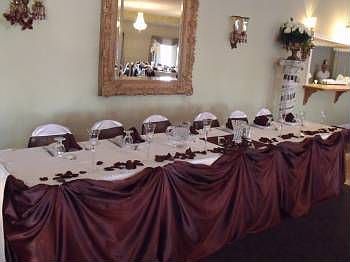 Walk through the doors and you will find Southern mansion style elegance with a grand staircase, dazzling chandeliers, majestic columns, and gracious balconies making a perfect background for all your pictures. There is a large wooden dance floor and a sound system in place with DJ included. Lots of elegant decor, and the chocolate fountain and champagne fountain give it the finishing touches. Let us help with any of your needs for the reception, as we know this can be an overwhelming affair. Once you're here, you can sit back and relax to enjoy your perfectly planned day because we know your reception is just as important as your wedding.