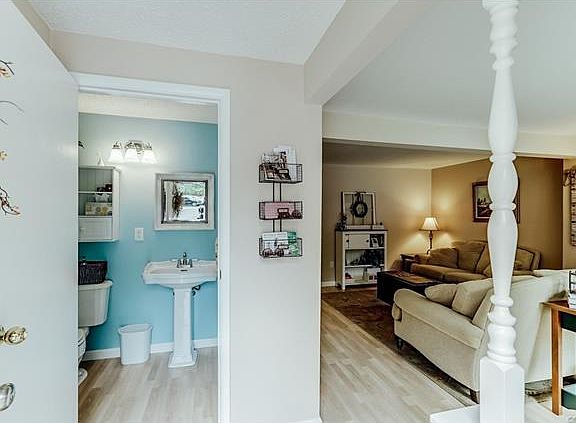 This charming townhouse is waiting just for YOU! With updates & neutral colors throughout, this home is move-in ready. Walk in on the first floor & you are greeted by an open & inviting foyer, beautiful half bath, & spacious coat closet. You will enjoy the large living room with updated laminate HW floors & huge picture window complete with bench seating! The living room then leads to the dining room that opens directly to the chef's portion of the kitchen where counter space, cabinets, & matching appliances will not disappoint. Downstairs basement includes a spacious family room, with ceramic tile floor, that is perfect for a play area, man-cave, sewing room, or office! Also downstairs is a separate utility room with built-in storage & W/D, full-bathroom convenient for guests, & entry to the private & fully-fenced (6 ft) back deck (16' x 12') & paver patio. Upstairs boasts 3 bedrooms with direct access to the full bath from both the master bedroom & the hallway. The master bedroom showcases a large walk-in closet & separate vanity area to get ready. Don't miss out on the updated Roof ('16) and HVAC ('16). Great schools & location, you don't want to miss out!