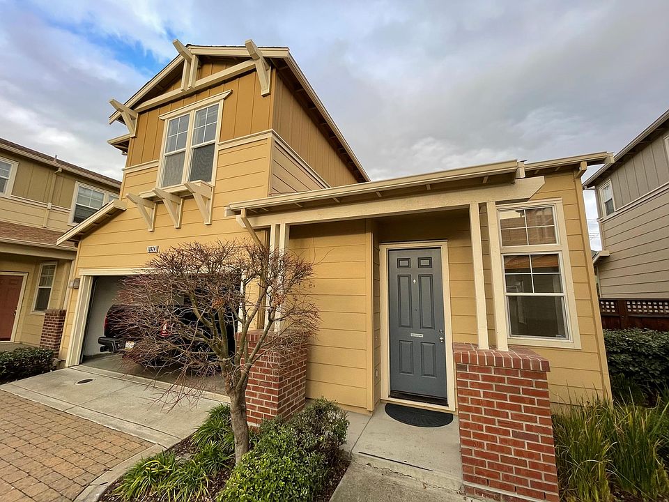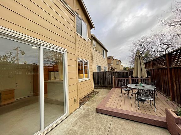 Freshly painted home with new stainless steel refrigerator, gas stove, micro-hood, and dishwasher. New thick carpet and pad. Modern open floor plan with soaring ceiling in main room. Lots of natural light. Excellent central heat and A/C. Laundry hookups on second floor. Private backyard with built in seating. San Leandro schools. Master has large walkin with mirrored door, oval soaking tub. No pets. No smoking. Tenant pays PG&E, water and trash.
