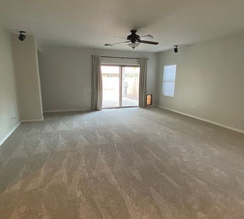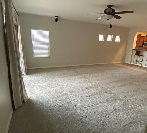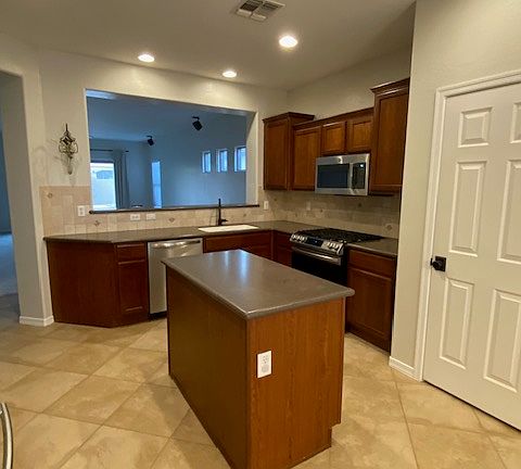 Beautiful four bedroom, 2 bathroom home. Fresh neutral paint, carpet and blinds. Split floorplan with a large great room, kitchen has stainless steel appliances and a gas stove. Washer / Dryer included. Backyard has a natural gas fire pit and bbq grill. Community has tot lots, splash pad and a dog park. Owner pays for HOA fee. All utilities are paid by the tenant.