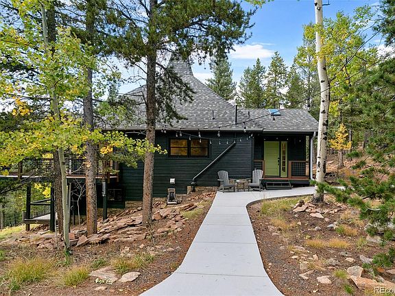 Rare 2.5-acre mountain retreat backing directly to Staunton State Park—your private gateway to hiking, snowshoeing & endless Colorado adventure. Set at the end of a quiet cul-de-sac with mature trees, rock outcroppings, and protected park views from two expansive 400+ sq. ft. decks.