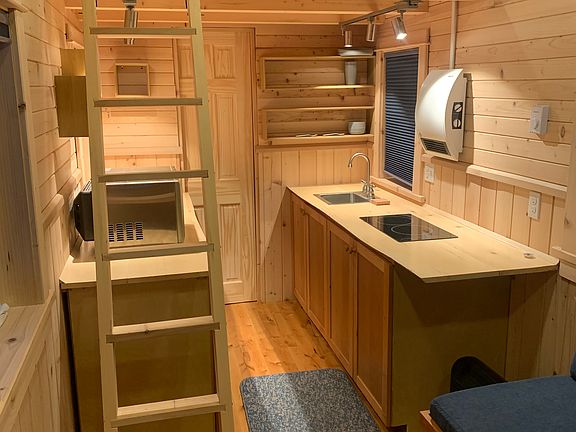 WE HAVE NOT POSTED THIS ANYWHERE ON FACEBOOK MARKETPLACE. IF YOU ARE SEEING IT THERE, IT IS FRAUDULENT. Available August 9 until May 31, flexible length on lease if you want to do shorter. Very cute, cozy tiny home. It was built on a trailer but is stationary. All the amenities; kitchen, bathroom, and loft for sleeping. Home is two years old. Only one tenant (it is really small!). No pets. No smoking or vaping inside or outside on the property. Landlords live next door. Background check, credit check required. We are looking for someone with no criminal history, no eviction history, and good credit. Don't worry about completing an application through any of these listing websites; I will get your email for the background and credit check service that we use when we are otherwise in agreement for you to lease. This is seasonal lease August 9 through May 31 at the longest, but can be as short as you want it, including month to month; our standard lease includes a clause that renter can terminate nearly with one month notice. All utilities are included: electric up to $200/month, water, Internet wifi is included and shared with rental next door. Heat is electric; $200 will easily cover the largest winter bill with last year's renter was less than $150; you'll be plenty cozy, but just don't run space heaters with the windows open ;) or something. Garbage--curbside bin that you will need to get up at 6am on Tuesdays to put it out. We have plenty of off-street parking in winter by the road, but you will need to walk up and down the hill when the driveway is snowed in. First month's rent due on lease signing. Security deposit due on move-in. Last month's rent can be paid over the first 1-3 months. Rents can be pro-rated for partial-month occupancy the first and last month. Background and credit check required.