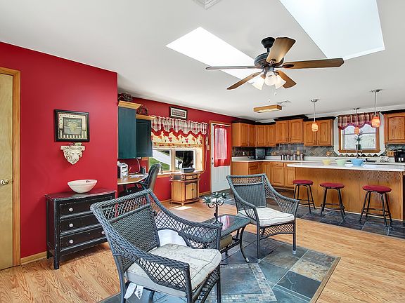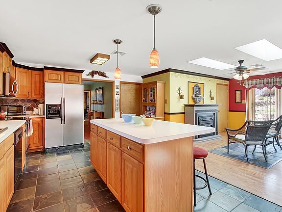 Large One-Story Rancher on 1.25 acres w/a beautiful country view. Open sprawling kitchen with slate floors, granite and large center island opens to a family room. Separate DR plus a 20x15 living room with a wood stove. Large Master BR w/ cathedral ceilings. Full finished basement with 2 more bedrooms, family room, a kitchenette and full bath. Detached 2 car garage. Above ground pool and a hot tub plus a 16 x 13 Sunroom. Perfect for your privacy.