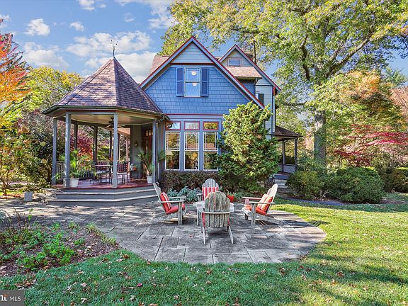 New Price and Newly Staged Come Take Another Look at This Incredible Property! Welcome to the stately charm of this expanded Farmhouse beauty, graced with a welcoming front porch and situated on a spectacular 20,501 square foot lot in the highly sought-after. Originally built circa 1888, this elegant home showcases timeless character with gorgeous oak floors, exquisite millwork, and enchanting architectural details. As one of the first homes built in Garrett Park, this distinctive residence is ideally located near the tennis courts and the town center. The inviting front porch sets the tone as you enter the home through a handsome “L” shaped entry foyer. Inside, discover a formal living room with a dual-sided fireplace and pocket doors. The living room seamlessly transitions to an elegant dining room with custom built-ins, another dual-sided fireplace, and access to a side porch. The renovated chef’s kitchen is a culinary delight, featuring Soapstone granite counters, a Heartland gas range with six burners and a Copper exhaust hood, a farm sink, stamped tin ceilings, pendant lighting, a built-in wine rack, display shelving, and glass front cabinetry. Adjacent to the kitchen is a sun-filled breakfast room with picturesque views and access to the rear wrap-around porch. In 2004, the property was expanded with a two-level addition, introducing a sun-drenched family room with a fireplace, a built-in reading bench, and access to the rear porch via French doors. The main level is complete with a powder room, a laundry closet, and a built-in sound system in the kitchen and family room. The second level boasts three bedrooms, two updated full bathrooms, and a lovely primary bedroom suite with a beautifully appointed bathroom and an office nook. The top-level features two enchanting bedrooms, a full bathroom, and a bonus sitting room/office. The unfinished lower level provides copious storage space and a workbench area. Outside, the remarkable expansive yard (31,195 sq ft combined) is adorned with beautiful mature landscaping, a brick potting shed, a front porch, two side porches, a rear attached octagon gazebo, and a delightful stone patio. A private gravel driveway offers ample room for multiple cars. Nestled in the heart of the Town of Garrett Park, known for its close-knit community and independent spirit, this extraordinary property is conveniently located blocks away from the MARC Train, Strathmore, Grosvenor Metro, Pike and Rose, and Whole Foods. 160403420346 tax record lot size: 20,510 sq ft (this lot has the home)