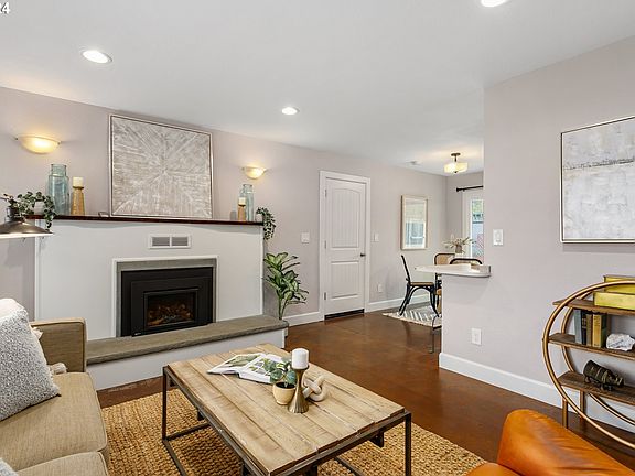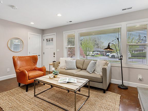 Exceptional quality in this high-end complete remodel. The kitchen features sleek & stylish quartz countertops, eating bar, stainless steel appliances and modern soft close cabinetry. Eating nook with a slider to the fully fenced and level back yard perfect for your spring and summer bbq?s. The spacious primary suite features a beautiful bathroom w/custom tile. The bright and open living room has large windows, stained concrete floors, gas fireplace with a custom raw edge wooden mantle and stone hearth. The partial garage conversion gives you additional living space for a third bedroom, playroom or home office while still keeping some storage space accessible from the exterior garage door. New in 2018~ high efficiency forced-air gas furnace, water heater, central a/c, electrical, plumbing, roof, gutters, windows, siding, paint and more!! Large driveway w/space for RV or boat. This convenient location is near shopping, restaurants, and parks. Easy access to public transportation & PDX airport. [Home Energy Score = 6. HES Report at https://rpt.greenbuildingregistry.com/hes/OR10007688]