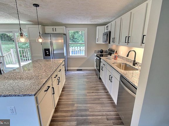 Offers due Monday Oct 4th 5:00. This is a beautifully renovated light filled home with an open floor plan. Updated gourmet kitchen with new stainless steel appliances including dual zone wine fridge and new granite countertop. The kitchen opens to a bright and open living room. A tranquil rear yard features an above ground pool and backs to a wooded area for your privacy. A quaint deck is situated off the kitchen and opens to the pool for enjoying your morning coffee or tea. The lower level living room is open and features a wood burning fireplace. The upper level features two fully renovated bathrooms. Updated LED recessed lighting throughout the home.