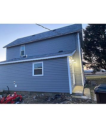 Farmhouse for sale! Completely remodeled, brand new siding, brand new 800 ft.² patio with fire pit and seat wall. All new kitchen cabinets countertop flooring. All new bathroom, all new carpet and flooring. All new vinyl windows. Just insulated with USA insulation with lifetime transferable warranty!!!!! Corn stove and wagon will stay. Has propane furnace. Can burn corn as primary or secondary heat. All appliances are brand new and can stay for the right price. Barns are not in very good condition. Could be salvaged with new roof and some work inside. Ferris 61 inch mower can be added for the right price. Sitting on 2 acres Contact Alex Filbrun with questions or to set up a showing @ 937-815-6639