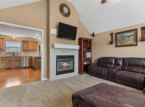 Beautiful 3 bedroom 3 bath family home on CUL DE SAC in Liberty School District. You will love the large deck which overlooks the large fenced backyard with stamped concrete patio and fire pit. Large family room with vaulted ceilings & see through fireplace to eat in kitchen with GORGEOUS hardwood floors, stainless appliances & walk in pantry. Large finished lower level rec room, the sellers use as a guest area w/ additional third bathroom. 2 car oversize garage provides lots of storage options, Roof replaced 2019