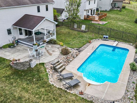 Pool Party People! Get started making some memories here in the Oaks, a great location in Northwest Allen County school district. Super close to the Parkview campus, shopping, restaurants, and access to I-69. This is a 2 story home on a finished full basement. 4 bedrooms, 2.5 bathrooms. Hard surface flooring throughout the main level. Formal Dining Room. Fireplace in the living room with brick surround. Plenty of kitchen cabinet/counter space with undermounted lighting. All 4 bedrooms upstairs. Master suite has trey ceiling, fan, shower and separate tub. Both full bathrooms have dual sink vanities. The daylight basement is finished for additional living space. Beautiful fenced-in outdoor space has a covered deck space and large open concrete area overlooking the 8 ft deep in-ground pool with diving board. Don't delay. Schedule your private viewing today!