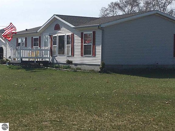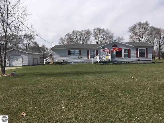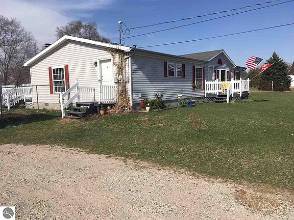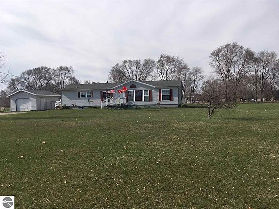 Spacious 3 bedroom, 2 bath home sits on 1.99 acres with 208 FT footage on M46. The home has a block foundation with 5 FT sidewalls and cement floor. There are siding lass doors in the rear that lead to a large deck with huge fenced in back yard. The 5 Ft fence (installed in 2012) runs the length of the garage and house, and is 50 FT deep. Perfect area for pets and children. Detached 1 car garage has new wiring and roof as of fall 2017. Shed at the back of the property has new walls wrapped in Tyvek. House had new roof and skylights in 2010. Laminate wood flooring installed in large living room and dining room in 2014. Open concept living space has a smaller living area with a cozy fireplace. Large kitchen has an island with lots of cupboards for storage and a built in desk area. Master bedroom has large walk-in closet and attached bathroom with separate shower and tub. Great home with a beautiful yard! Motivated seller! Come take a look!