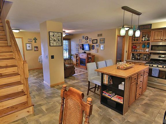 Wow! This home rivals a new build, but with all the amenities of an established neighborhood. This 3600+ sqft home was recently remodeled and landscaped, giving its former self quite a facelift. Upper level hosts all 4 Bedrooms with a split Master Suite that features a bench window, walk-in closet, and oversized Master Bath complete with jetted tub, separate shower, and double vanity. On the main floor you'll find a shared Laundry/MudRoom, Office, ½ Bath, eat-in Kitchen, Living Room, and large Great Room. The Kitchen features a custom island complete with butcher block top, oak cabinetry, tiled backsplash, and upgraded appliances. The Great Room is wired for surround sound, and features a cathedral ceiling and gas log fireplace. The Finished Lower Level is complete with two separate recreational areas plus a solid oak Bar with sink and a back bar! On the exterior you'll find a new roof, mature trees and landscaping. The fenced backyard is one-of-a-kind with a stunning stone patio complete with sitting walls and fire pit. Many more amenities that you'll just have to see!