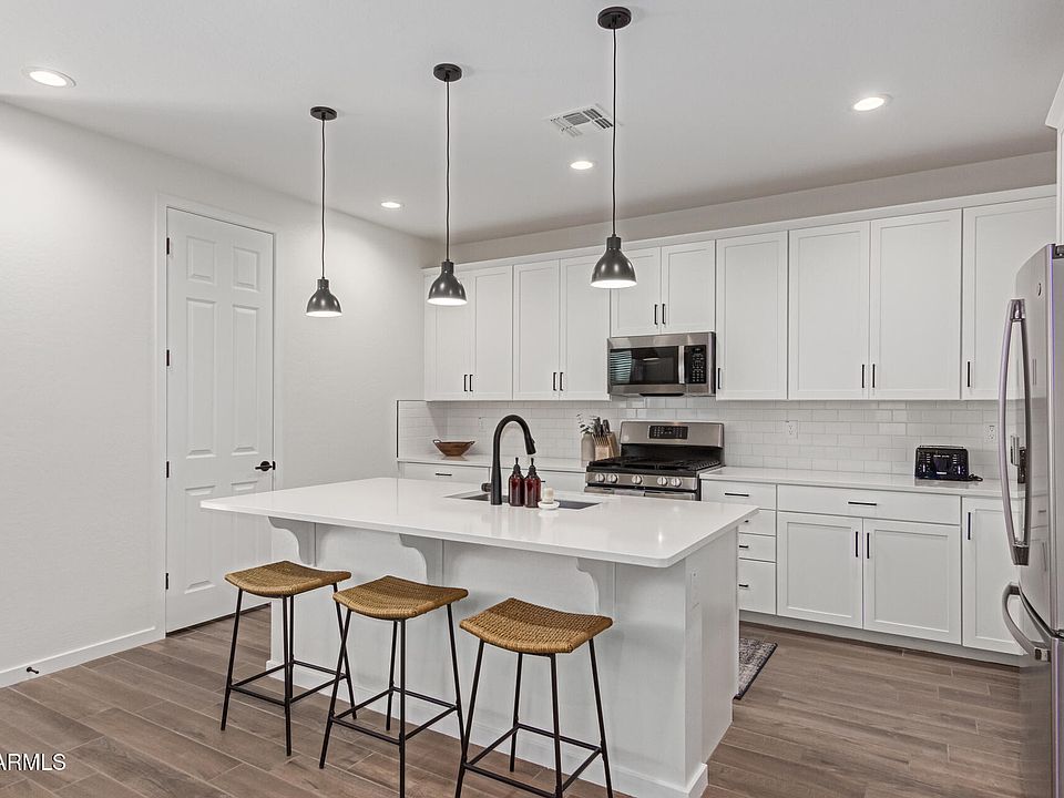 Upgrades Galore!! Built in 2023, this stunning 4-bedroom ''Slate'' plan features a spacious great room w/ upgraded wood-look tile floors & abundant natural light. Highly upgraded chef's kitchen shines with stainless steel appliances, subway tile backsplash, white cabinetry, quartz counters and center island w/breakfast bar. Unwind in the serene primary suite, complete w/dual sinks, a soothing tub, stunning tile shower and walk-in closet. Secondary guest suite includes private ensuite. Step outside to professionally landscaped backyard, perfect for relaxing afternoons or lively BBQs. High end water softener conveys! Enjoy community perks, including a basketball court, sand volleyball court, playgrounds, and barbecue