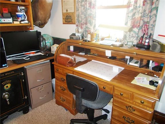This beautiful 4-bedroom/1.5-bath Colonial has been well maintained and is located on a 4.5 acre country setting. It features eat-in oak kitchen with pull-out pantry and snack bar; formal living and dining rooms; master bedroom with deep closets; half bath down/full bath up; office; mudroom; security system; all wood floors on 2nd floor and all new windows; dry basement; newer Lenox furnace and newer roof on house; large back deck; fully insulated attic; one stall horse barn with water, electricity and walk-in cooler; 2.5-car garage with upper level; 40 x 100 metal pole barn; 3 rows of grapes, 5 apple and 4 pear trees, blackberry bushes.