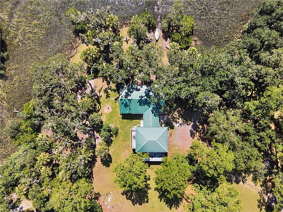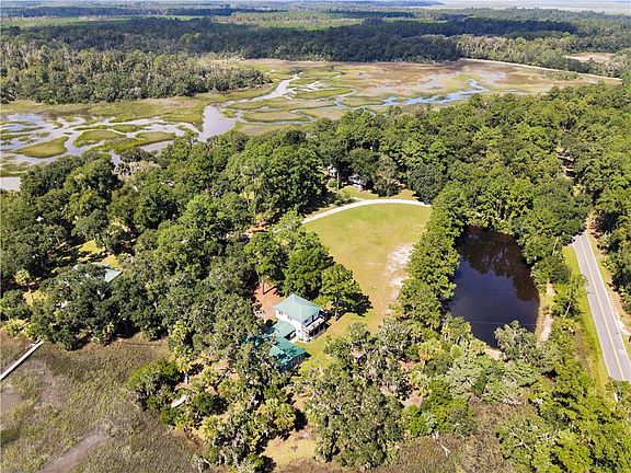 Take a step back in time and enjoy a slower pace of life! Unique property with the original 1950's "Fish Camp" house and garage apartment addition with tons of character. 4 lots totaling 3 acres with Southern views and over 400 feet of marsh frontage- perfect for launching kayaks on high tides! Fish Camp house has heart pine throughout with 2 bedrooms and 1 bath. Living area beams have been modified to feature an open floor plan with tons of potential. Great breezeway connecting to the 2 bed/1 bath garage apartment complete with small kitchen area and an open elevated deck. Tons of storage beneath that could be closed in easily with garage doors. With a little TLC this unique property could be turned in to a great vacation rental or primary residence and guest house! Nestled under a canopy of Live Oaks with plenty of privacy and your own fresh water pond. Just minutes from Darien with restaurants and shopping. 5 miles to public boat launch and marinas. 1 hour to JAX/SAV. Selling AS-IS.