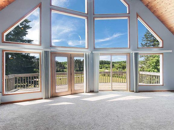 A whole lot of house and land for the money! This Chalet style home has 5BR/3full baths, 2 kitchens & 3 fireplaces! Lot's of windows overlook the 5 acres of country side. Detached 24 x 30 garage, mix of hardwoods and pines, multiple decking and patio areas. Home does not come with appliances and does require some TLC. Just moments to the Village of Kingsley.