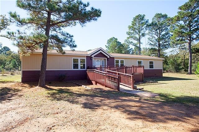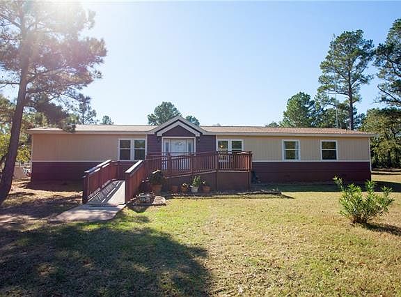 2009 4 Bedroom 3 full baths. Unbelievable landscape with towering pine trees in a non-burn area. Home has front ramp for access with no worry of stairs. Home is very large and in great shape. New roof installed 11/1/18. Lots of privacy with the home set back off the road. Back acreage is wooded. Large front and back decks. VERY PEACEFUL 10 ACRES with this really nice home. Horses YES!! Wildlife is amazing. Hunting is allowed. *No restrictions*