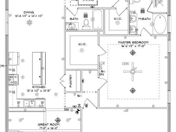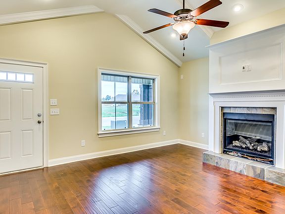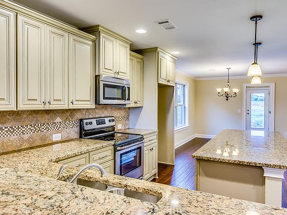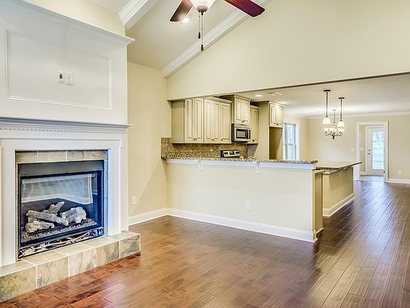Simplistic and sensational, the "Kendrick" design offers fine details, all on one level with its attention to comfort and highly appealing use of space. Impressive great room with vaulted beamed ceiling and expansive space that offers a pleasant spot for family time or entertaining guests. Perfectly centered to the great room allowing open yet defined space, the kitchen is special in every way with granite island, custom cabinetry, and hardwood flooring. Separate master suite allows privacy for the owner from the guests or other occupants of the house. Covered rear patio is great for an outdoor retreat. The two car garage completes the amenities to this all inclusive plan.