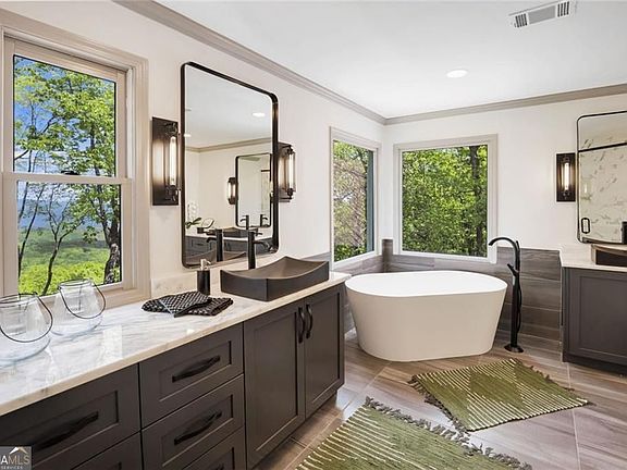 Just 20 minutes from downtown Jasper, this custom-built mountain estate offers 5 bedrooms and 5.5 bathrooms with recent updates throughout. The home features a remodeled basement, a renovated main-level kitchen with new appliances and countertops, and updated master and secondary bathrooms. A full in-law suite and terrace-level entertainment spaces, including a game room, exercise room, and workshop, add flexibility and function. Expansive porches and a four-season glass porch capture panoramic mountain views, including seasonal glimpses of Amicalola Lodge and Falls. With soaring log beams, built-in bookcases, and a drive-under garage for woodworking or storage, this home combines comfort, style, and mountain living just minutes from town.
