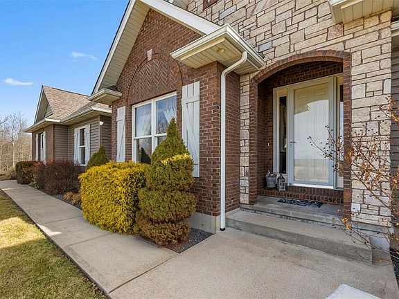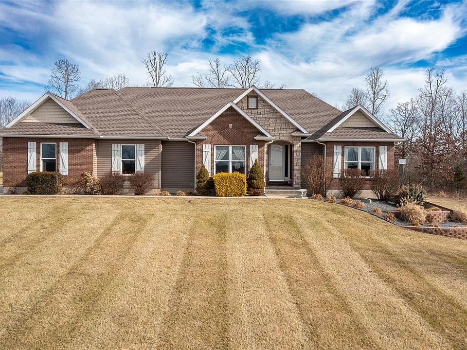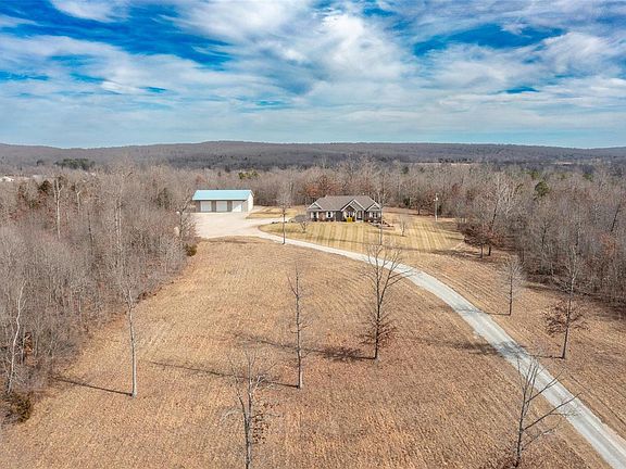 Soak in the spectacular view! This 12.61 acre property features 1964 sq ft on the home's main level with an open living space, owner's suite, 2 additional bedrooms and a bath, pantry and laundry room. You will notice details including 9' walls, multiple ceiling designs, crown molding and wood floors, adding to the custom feel of the home. 9' walls are carried through to the mostly finished walk-out basement, where you will find a family room, bedroom, bath and additional finished spaces that would be ideal for a home office, fitness room or craft room. The unfinished portion of the basement houses the home's mechanicals and provides a generous amount of storage space with built-in shelving. Outside, enjoy the well-kept, irrigated lawn or relax in the hot tub on the patio. This property is complete with a 40'x60', 3 bay shop where the possibilities for use are endless. Located 90 miles south of St. Louis and 50 miles northeast of Cape Girardeau, this impressive property is a must-see!