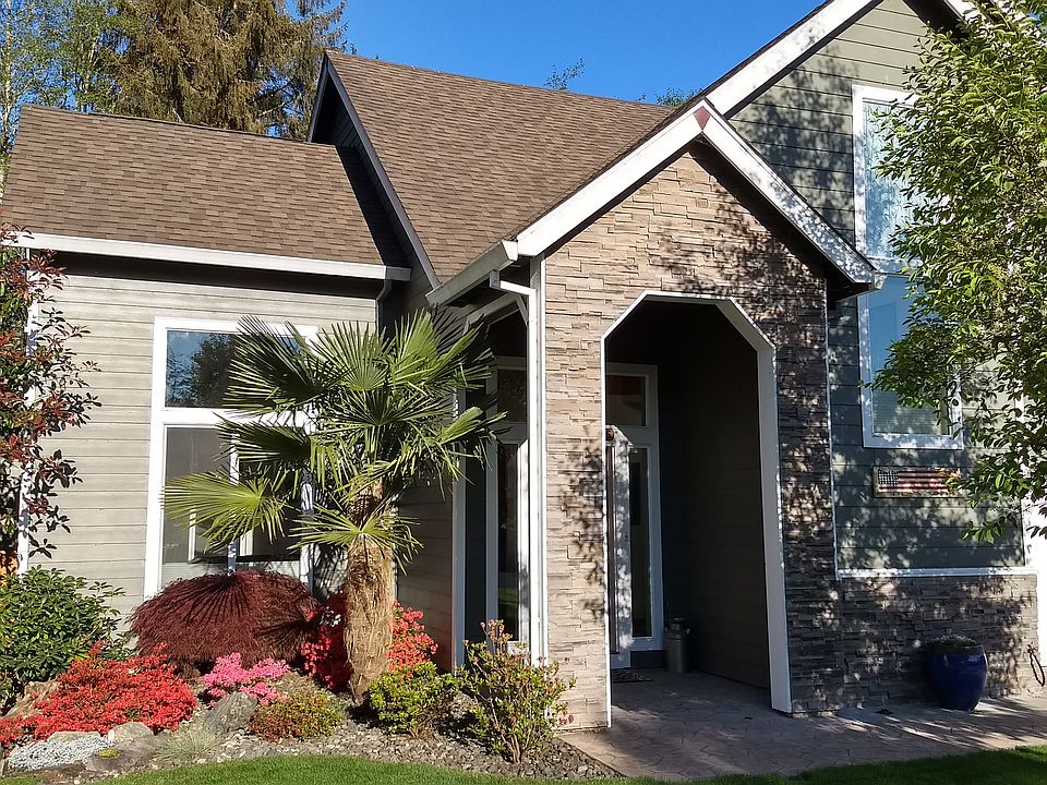 The overall design of this Hidden Estates gem includes a modern open layout. The main floor includes a convenient main floor guest room, 3/4 bath, and solid wood doors. The efficient island kitchen features a breakfast bar, LG stainless steel appliances, cherry cabinets with 40" uppers, auto-on under cabinet lighting, and artisan travertine backsplash. Kitchen is open to dining area as well as the great room with its 20 ft. vaulted ceiling, skylight, huge windows, and gas fireplace. Second floor includes an impressive master suite with large walk-in closet, dual vanity, jetted tub, and a dual-head slate walk-in shower. Also upstairs is a 3rd bedroom , another full bath, laundry room, and a reading/office area overlooking the entry and great room below. Very private fenced backyard that backs to Nature Conservancy with storage shed and numerous flowering shrubs, bushes, and even palm trees. Also boasts a partially covered stamped concrete patio with natural gas Weber grill and built-in cabinet with tile counter top. Oversize 700 sq. ft. garage with 11 x 17 workshop. Home is also wired with a transfer switch for use with a backup generator for peace of mind during a power outage. Newer laminated shingle roof. A pre-listing whole house inspection has been done and repairs completed. Beautiful landscaping and a stone exterior detail make this a showcase home.