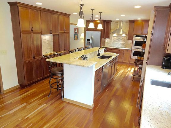 BackOnMarket. Best Kitchen in Neighborhood! 4 bed, 2 1/2 baths with over 2,700 Sq Ft w/ the finished area in basement. Beautiful 2Story on Court Location w/ 0.4 Acre Lot. Covered Porch leading into Hardwood Foyer, Front Vaulted Ceiling Office w/ Built-Ins, Living Rm & 1/2 Bath off Foyer. Gorgeous Brand New Gourmet Kitchen w/ 2Tiered Granite Island w/ space for 5. Fully Applianced Kitchen including beverage fridge & stove top w/ Stainless RangeHood, Wall of Cabinets/Pantry, 2 sinks/disposals, Stone Tiled Back Splash, Hardwood Flrs. Adjacent Dining Area, Vaulted Ceiling Family Rm w/ Skylights, Wood Burning FP & Built-In Shelves. Large Owner Suite w/ Walk-In Closet & Remodeled EnSuite with Soaking Tub, Double Vanity & Glass Shower. 1st Floor Laundry, Awesome Yard, Composite Deck, New Windows.
