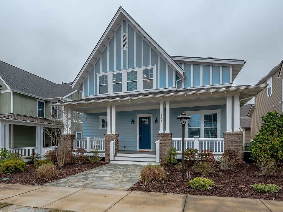Enjoy living in the gas lantern district & across from one of the many green spaces Riverwalk has to offer! No expenses spared on upgrades inside or out. There is plenty of outdoor living w/ huge covered front porch & screened in back porch. Inside, the kitchen is the focal point w/ custom cabinets, huge island & breakfast bar w/ granite counters, upgraded stainless steel appliances, gas cook top, double ovens, & walk-in pantry. Kitchen opens to living room w/ plenty of windows for natural light, gas fireplace w/ custom ship-lap wall & built in bookshelves. Master bedroom boasts a large walk-in closet, barn door access to the master bathroom w/ custom walk-in tiled shower featuring rain head shower head, complete w/dual vanities. There is ample storage in this home w/ tons of closets & convenient walk-out attic storage. Upgraded lighting throughout! Rare 3-car garage and plenty of on-street parking. Close to community fire pit, River District shops, restaurants, trails & kayak launch.