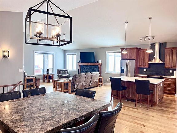 This stunning 2016 custom-built home sits on 9.88 acres with prime Trans-Canada Highway 16 frontage, making it the perfect blend of luxury living and investment opportunity. Designed with top-tier finishes and thoughtful upgrades, this property is a must-see! Inside, the 1,500+ sq. ft. main floor features an open-concept design with vaulted ceilings, a wood-burning fireplace, and high-end details like hardwood floors, granite countertops, and heated tile flooring. The gourmet kitchen flows seamlessly into the dining and living areas, creating a warm and inviting space. The primary suite is a private retreat, offering a walk-through closet, spa-like ensuite with double vanities, a custom glass shower, and a soaker tub—with direct access to the saltwater hot tub on the side deck. A laundry room and half bath complete the main level. The fully developed walkout basement adds even more living space, featuring three large bedrooms, a full bathroom, an enormous family room, a wet bar, cozy carpeting, and a second wood-burning fireplace—perfect for entertaining or relaxing. Outside, the possibilities are endless! The property includes a heated 29’ x 40’ attached garage and a 28’ x 48’ heated shop, ideal for storage, a home business, or hobby space. The property has been landscaped for RV storage, and the FUD zoning allows for a variety of opportunities, making this a smart investment with endless potential. Whether you’re looking for a dream home for your family or a property with income-generating possibilities, this one checks all the boxes. Don’t miss out on this prime real estate opportunity!