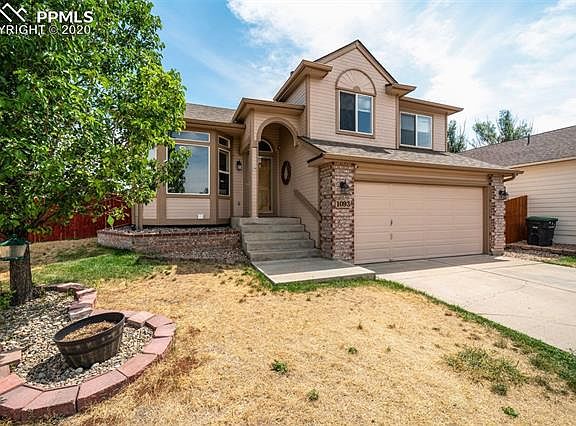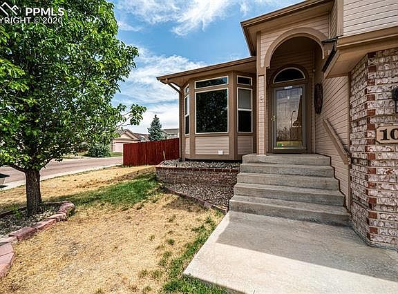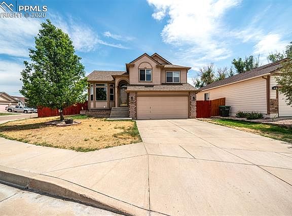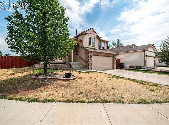 Spacious corner lot with full privacy fence! Artificial turf play area and built-in fire pit area also located in large backyard. Open and bright with vaulted ceilings and tons of natural light! Stainless steel appliances and a gas fireplace in living room. Upstairs you will find the master bedroom with adjoining full bath, plus two additional bedrooms and full bath. Additional room in the finished basement can be used as an additional family room or bedroom! Ceiling fans and central AC! Conveniently located close to schools, parks, I-25, and Ft. Carson. This home is a must see!