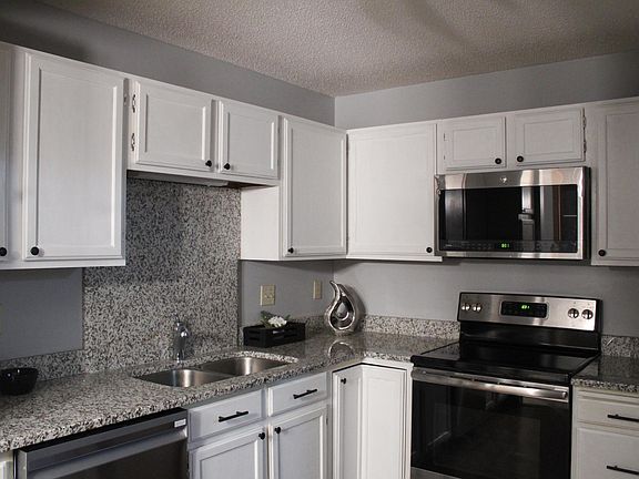 This main level unit opens to a beautiful, south facing yard. Large windows to catch an abundance of sunshine no matter the season. Enjoy the wood burning fireplace in the winter and screened-in porch in the spring, summer and fall. Beautiful swimming pools! FHA approved! Rentals are approved and association is pet friendly. Updates throughout! Newer stainless GE appliances-granite counter-wood floors in white kitchen-bdrm window-H20 heater-light fixtures-faucets-vanity-mirrors! New siding is coming. already paid! Newer Roof! In Unit Laundry w/ Frontload Washer/Dryer-Ceramic tiles-new vanity-new toilet. Master bedroom is spacious & luxurious two closets & mstr bath w/2 sinks-walk-in shower. Main bath has tub. Two outside swimming pools-visitor parking! Demand location-nearby trails-parks/dog park. Restaurants-Hyland Park/Ferry Trail Bridge and Hwy 169 & Hwy 100 close by.