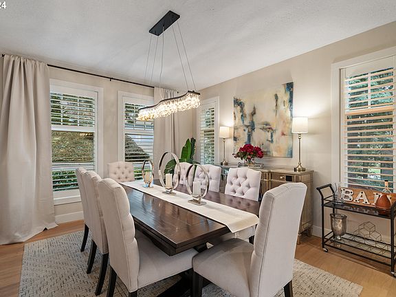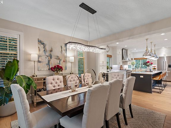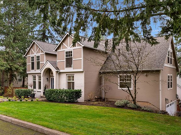 This stately property blends classic beauty, modern amenities and natural surroundings, all in a convenient location. Every inch of this sprawling home has been meticulously updated. The main level spans over 2,300 square feet, featuring multiple living areas for every occasion. A grand foyer welcomes you into the expansive living room with doors out to a large deck. Unwind in the huge family room with beautiful fireplace. Stand-out kitchen boasts a generous island, two ovens, Fisher & Paykel range, stainless steel appliances, and a breakfast nook with incredible floor-to-ceiling windows. Host elegant dinner parties in the spacious dining room for years to come. Double doors lead to a well-appointed office for seamless work-from-home convenience. Wainscoting adds character in the office and up the stairs. Three bedrooms on the upper level. Primary feels like a hotel suite with gas fireplace, walk-in closet, and a stunning sun-drenched bathroom with skylight. Additional bonus room on this level with more skylights, stacked washer/dryer, and storage...could be a spacious gym, playroom, and more! Fully remodeled basement complete with rec room, kitchenette, bar, bedroom with en suite bathroom, and a full laundry room. Plus, bring your hobbies and outdoor gear to the amazing workshop/storage room. The fun continues outside with a sport court in the backyard! Enjoy proximity to schools, shopping, fabulous dining in Lake Oswego, and Tryon Creek State Natural Area, with easy access to freeways. [Home Energy Score = 4. HES Report at https://rpt.greenbuildingregistry.com/hes/OR10225301]