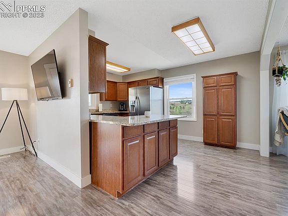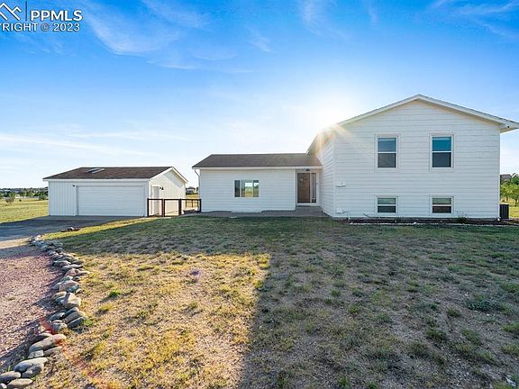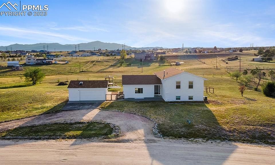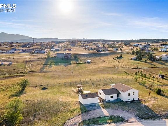 This is the one you've been waiting for; unrivaled mountain views on a pristine 2.6-acre lot zoned for livestock - what more could you ask for? A modern sun-filled oasis, this impressive four-bedroom home offers its residents a quiet country lifestyle minutes from the city. Wander through the spacious entertainer's floor plan, ready for your next function leading you to the oversized kitchen. Welcome the cool fall air from the deck in your private backyard, overlooking the mountains in the distance as your pets run free under the sunset, or spend the evenings and weekends in the luxurious sunroom taking it all in. Are you looking for more space? The home's main level offers a large flex room just waiting for your vision. The space can be transformed into a secondary owner's suite, a home gym, a large office, a home theater, or flex space - the choice is yours! Some of the numerous amenities found at this home include a dedicated laundry space off the primary bedroom, a formal dining room, a new A/C and furnace, fresh exterior paint, and a special zoning for livestock and horses! Hop in your car and take a quick trip to nearby trails, golf courses, parks, shopping centers, schools, and area businesses, allowing you to enjoy the perfect blend of country and city life. This home is only 20 minutes from Peterson Air Force Base and a short distance to the heart of Colorado Springs. Get ready to embark on the next chapter of your life on Squawbush Loop!