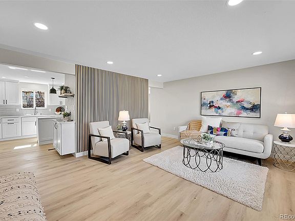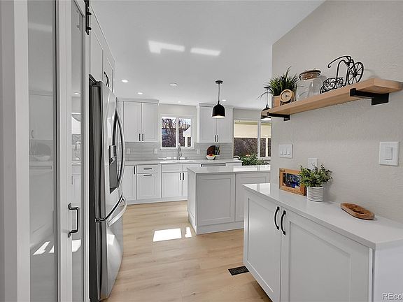 This beautifully renovated ranch-style home offers an open layout, easy to maintain and durable luxury vinyl wood floors, new energy efficient double pane windows, fresh paint, new carpet, new fixtures, new roof, new hot water heater and central air conditioning; plus, a spacious kitchen equipped with soft close cabinets and drawers, stainless steel appliances, pantry, and Quartz counters, a sun filled eating area, a cozy family room with wood burring fireplace and an inviting front room/dining room with a stylish acoustic wall-perfect for entertaining. In addition, the main floor offers a primary bedroom with private bathroom and walk-in shower, bedrooms #2 and #3, and a full bathroom with linen closet. Downstairs, enjoy the open recreation space, plus office/flex room, bedroom #4 with walk-in closet and egress window, 3/4 bathroom, laundry room and storage space. Outside offers a relaxing oasis with a covered patio, mature trees, sprinkler system, and storage shed. This home is conveniently located near Highway 285 & C-470, numerous parks and trails to include Harriman Lake & Bear Creek Lake Parks, shopping and entertainment. This property is a must-see for those seeking a move-in-ready home with modern upgrades and thoughtful design.