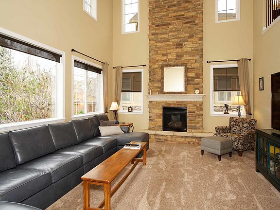This breathtaking Shea Home in The Hearth has upgrades galore, designer finishes, and evident pride of ownership. The open floor plan is ideal for living and entertaining with a formal dining room, a two-story family room with soaring ceilings and a stunning stone fireplace. The gourmet, Chef's kitchen features cherry cabinets, butler's pantry, double ovens, stainless steel appliances, slab granite countertops, a European arch design over the gas cooktop plus barstool seating at the large island with a nearby eat-in area. Upstairs, the private master suite is a getaway sanctuary with a quiet sitting area, large walk-in closet, huge shower, dual sinks, and a Jacuzzi tub. The bonus room on the third-story is perfect for a media or hobby room, exercise area, or playroom. The freshly finished basement is the coolest place to hang out! Conveniently located steps from Southridge Recreation Center, Paintbrush park, many hiking & biking trails, & so much more!