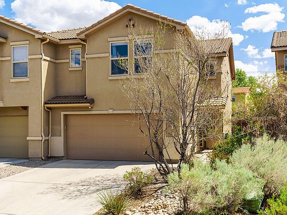 Beyond the gates, here's what awaits! A cozy townhouse with refrigerated air, 3 bathrooms, 2 car garage, and a fluid floor plan. Kitchen features stainless steel LG refrigerator, ample cabinet space, a pantry, a bar, and opens up to the living room and a recently landscaped backyard (2025). Upstairs invites natural light into 2 bedrooms and a sizable loft/office. Spacious primary en suite features separate tub and shower, with walk-in closets in both bedrooms! HOA includes common areas and access to clubhouse and gym. Nestled in a well maintained gated community, conveniently located near Sandia Labs, KAFB, I-40, Los Altos Park, shopping, and the Sandia foothills! Schedule a showing now, for what you see in your dream home videos is all here at The Presidio!