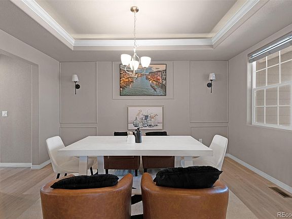 Welcome to your Meridian Ranch dream home — where everyday living feels like a retreat! This beauty shines from the start with fantastic curb appeal, mature landscaping, and a charming covered front porch just blocks from Antler Creek Golf Course, the Rec Center, and community parks. Step inside to a bright, open floor plan that’s perfect for modern living and entertaining. The spacious living room centers around a cozy fireplace and flows effortlessly into the chef’s kitchen, featuring stone countertops, a large island with seating, stainless steel appliances, a walk-in pantry, and a butler’s pantry leading to the formal dining room. Gorgeous wood floors and abundant natural light tie it all together. Working from home? The main-level office with French doors is ideal. A mudroom with built-ins keeps everything organized, while the dining nook offers the perfect everyday gathering space. Upstairs, the loft provides extra flex space, and the primary suite is a true retreat with its private sitting area, clawfoot tub, dual-entry walk-in shower with double heads, and a custom closet that connects directly to the laundry room (you’ll never look at laundry the same way again!). Each guest bedroom upstairs includes its own private bath and walk-in closet, offering everyone comfort and privacy. Downstairs, enjoy a fully finished basement with a family room, bedroom, and theater room with tiered seating — the ultimate movie-night setup.