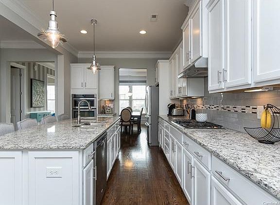 Better Than New Construction! Immaculate Showstopper in Skybrook! 5 Bed, 4.5 Bath Full Brick Home with Upgrades Throughout. Hardwoods on Main, Well Appointed Kitchen Features Granite Countertops, Tile Backsplash, Stainless Steel Appliances, Tiered Cabinetry and Large Island Opens to Great Room with Coffered Ceiling, Stacked Stone Fireplace and Custom Cabinetry. Guest Suite and Full Bath on Main. Oversized Owner Suite and Three Spacious Bedrooms and Rec Room Upstairs. Fenced Yard Backs to Woods.