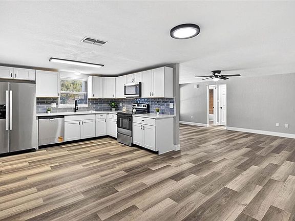 3-bedroom 2 bathroom with a HUGE oversized 1 car garage! The seller will help with closing cost expenses with a full price contract. Completely remodeled!!! -BRAND NEW ROOF, -BRAND NEW AC, -BRAND NEW WINDOWS, -BRAND NEW WATER HEATER 2024, BRAND-NEW SEPTIC, -BRAND NEW SHAKER KITCHEN CABINETS, -BRAND NEW QUARTZ COUNTERTOPS, -BRAND-NEW STAINLESS-STEEL APPLIANCES, -BRAND NEW LVP FLOORING THROUGHOUT, -BRAND NEW FANS AND LIGHTS THROUGHOUT, -BRAND NEW AND BEAUTIFULLY REMODELED BATHROOMS, -BRAND NEW LANDSCAPING -FULLY FENCED YARD. GREAL LOCATION, SUPER CLOSE TO US19, ALL AMENITIES AND COMMUTE. COME AND SEE IT TODAY!