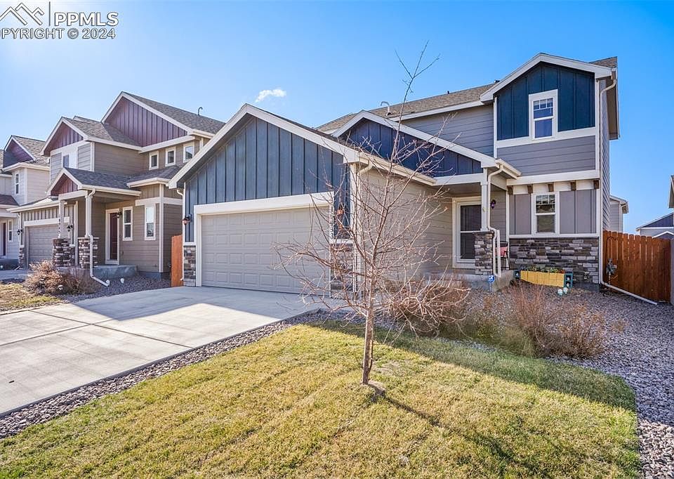 Nestled in the serene community of Lorson Ranch, this meticulously maintained residence presents an exceptional living opportunity. Constructed in 2019, this contemporary home spans 2,253 square feet, featuring three bedrooms, three bathrooms, and a spacious two-car attached garage, catering to both comfort and convenience. Upon entering, residents are greeted by a thoughtfully designed layout that seamlessly connects living spaces, making it ideal for both entertaining and everyday living. The heart of the home is adorned with modern finishes and is illuminated by natural light that enhances the inviting atmosphere. The property has a luxurious five-piece master bathroom, offering a private retreat for relaxation and rejuvenation. Further enhancing the appeal of this home is the inclusion of an unfinished basement, presenting a blank canvas for future expansion or customization according to personal preferences. Outdoor living is equally impressive, with a fully landscaped, fenced-in backyard that provides a safe and serene space for leisure and gatherings. The inclusion of solar panels, installed in 2020 and fully paid off, not only underscores a commitment to sustainability but also offers significant savings on energy costs. These state-of-the-art solar panels generate 5.76 kW, ensuring efficient energy use throughout the year. Additional amenities include air conditioning and the unique advantage of an assumable loan. Located in Lorson Ranch, this home is positioned to enjoy the best of Colorado Springs living, with easy access to local amenities, outdoor recreation, and more. Rowley Drive represents a rare blend of modern living, convenience, and sustainability, making it a perfect choice for those seeking a distinguished residence in Colorado Springs.