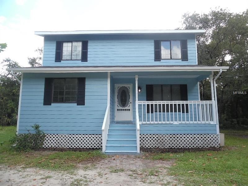BACK ON THE MARKET! BUYERS FINANCING FELL THROUGH. Great 2-story home just waiting for its new owner. Freshly painted exterior and a traditional front porch, perfect for rocking chairs are your first views of the home. Good floorplan with the living area, kitchen & master bedroom on the first floor. 2 bedrooms and a full bath on the second floor. French doors from the dining area lead out to the huge wood deck, a great place to relax or entertain. Galley style kitchen features tile countertops and decorative tile backsplash. Utility room with a walk in pantry. Master bedroom suite with its own private bath and a walk in closet. There is a convenient half bath located under the stairs for guests. Easy care laminate & ceramic tile flooring. There is a large 2-story shed too. Home is currently zoned for River Ridge Middle & High School. Great location with easy access to SR52, the Suncoast Parkway & 75. Don't miss this great opportunity!