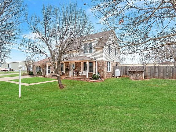 Modern farmhouse with a shop and pool on approx. 2 acres in Western Oklahoma! This large home boasts over 4,700 square feet with three bedrooms and 3.5 bathrooms. Upon entering you find the first living space. The large den feature tons of windows, entertainment corner with space for additional table and chairs! Powder room just off the den and garage entrance. From the den you enter the dining area with gas log fireplace. The kitchen features solid surface counter tops, large island with gas cooktop and walk in pantry with barn door. Breakfast room off the kitchen has tons of windows and can double as office space if needed. The upstairs primary bedroom is over 1,000 sq ft! The primary bedroom will be your sanctuary with private sitting area and balcony overlooking the pool. Two walk in closets in the ensuite along with soaking tub and shower. Fenced backyard with in ground pool and entertainment space. The 40 x 80 shop has 14 ft. sidewalls and two overhead doors.