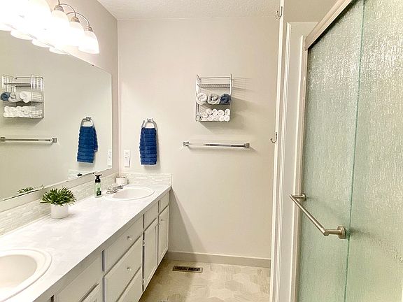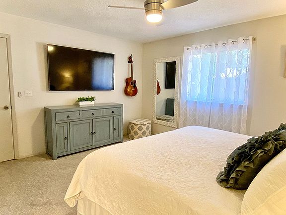 This is a beautiful, well-loved, well-maintained 3-bedroom home in a convenient, but quiet neighborhood. Split bedroom design, hardwood similar floors in common areas and new carpet in bedrooms. The cute, landscaped backyard is full of shade trees and quiet and is perfect for relaxing and summer BBQ s. The yard has two patios for dining or entertaining. Master has walk-in closet and double sinks. Walking distance to park
