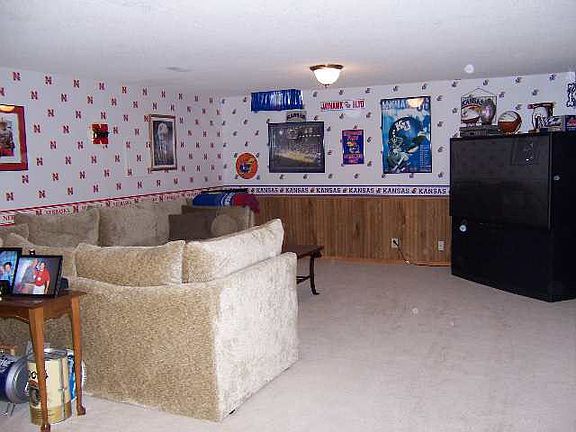 Darling 2 bedroom ranch with vaulted ceilings over living room, updated decor throughout, ceiling fans in living room and master bedroom are on remote controls. Neat kitchen with updated tilework, laminate floors, basement features a big rec room perfect for sports fans. The office in basement has closets across one end and is just off bathroom. Cute patio area. Picky first time buyers will love this cute home!