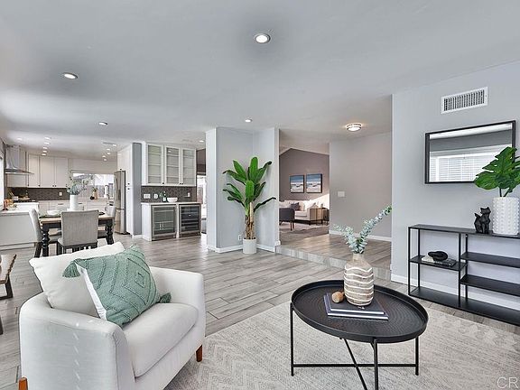 Stunning 4-bedroom, 2-bathroom home nestled on a tranquil Private Road. As you enter, you're greeted by an inviting open floor plan that combines elegance with comfort. The heart of this home is the gourmet kitchen, with exquisite finishes, quartz countertops, and LED lighting. Adjacent to the kitchen is a stylish dining area complete with a built-in beverage center, perfect for entertaining guests or enjoying family meals. Retreat to the Primary Suite, boasting a spacious walk-in closet and a luxurious en-suite bathroom, offering the ultimate in relaxation and privacy. Three additional bedrooms and an updated guest bathroom with dual sinks provide ample space for family and guests. The sunlit living room beckons with sliding glass doors that lead to the charming backyard oasis. Here, you'll discover a custom pool and spa, ideal for refreshing dips on warm summer days, while the built-in gas BBQ area sets the stage for memorable outdoor gatherings. The landscaping is beautifully designed for low maintenance, allowing you to enjoy the tranquility of your surroundings without the hassle. The private front courtyard features a gas fire pit, providing a cozy ambiance for evening gatherings or quiet moments of reflection. This home is equipped with newer HVAC and paid off solar panels, ensuring energy efficiency and cost savings. Storage is abundant in the 2-car garage, complete with built-in cabinets and extra shelving for all your organizational needs. Conveniently located near Starbucks, schools, shopping, and restaurants, this home offers the perfect blend of luxury, comfort, and convenience. With its impeccable design and prime location, it's ready for you to move in and experience the finest in modern living!