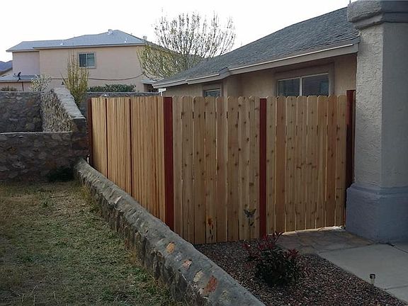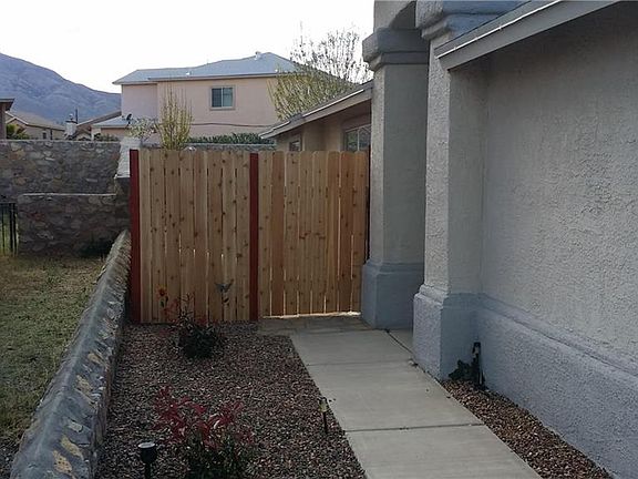 Cozy 4 bedroom 2 bath home in the Sandstone Ranch Subdivision. Front landscaping with rock and trees. As you walk in you will find yourself in the dining room. Wood floors line the area. Great for family dinners. As you continue on you will walk into the open kitchen with tile counters and black appliances. Off to the side you have a breakfast area over looking the large living area. All rooms are lined with the hardwood flooring. Make your way outside to the backyard where you will find yourself under a covered patio looking into the backyard. The backyard is landscaped with trees, grass, stained concrete. Private fencing lines the property giving you the up most privacy. This backyard is great for entertaining guests all year long. Home is equipped with refrigerated air and a 2 car garage. Minutes from Fort Bliss and the major highways. Come tour this home now!