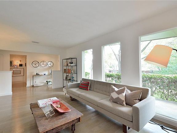 Incredible renovation of a Mid-Century Modern gem in Dallas' desirable Lochwood neighborhood. Spaces include 3 bedrooms, 2.1 baths, 2 living areas & and an attached 2-car garage. The stunning kitchen offers marble countertops with a waterfall edge, KitchenAid stainless appliances, wine refrigerator, pot filler & sleek cabinetry. Other notable highlights include an original rock fireplace, oversized windows providing abundant natural light, hardwood flooring & large utility room. The spacious master suite features dual walk-in closets and a fabulous bath with marble countertops, dual sinks, and a large marble walk-in shower. Outdoors you'll enjoy the fenced yard and patio, or Lochwood Park is just steps away!