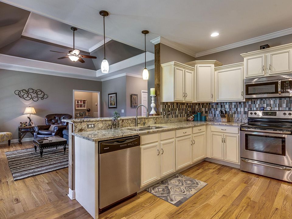 Everything you are looking for, stone/brick exterior, gorgeous kitchen w granite and beautiful backsplash, stainless appliances. Completely knock out master bath with tile surround shower, double vanity and Pocket doors, beautiful paint colors. hardwood floors.