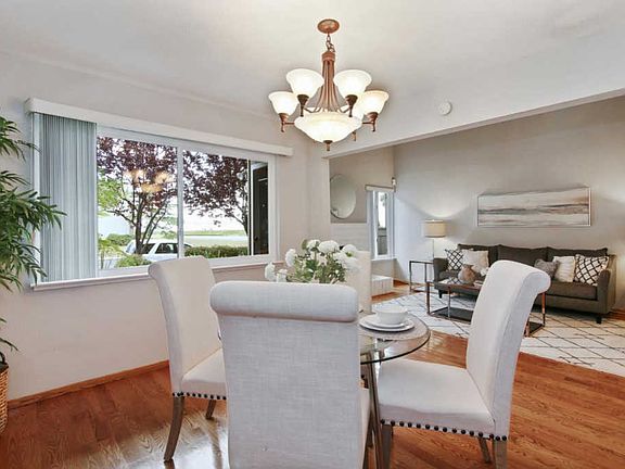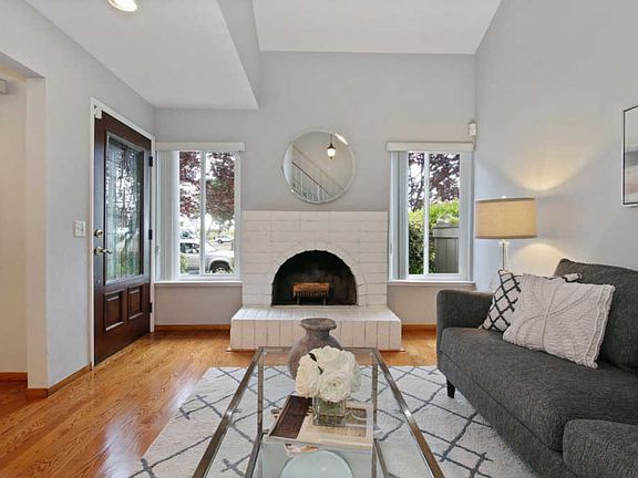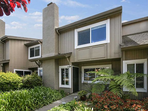 Perfectly Content. This 3 bed/2.5 bath townhome gives a calming vibe as you approach, with flowering gardens and colorful trees, all well manicured and kept up by the Bay Vista complex. Enter through an attractive stained glass front door. Distinguished hardwood floors span out through the downstairs quarters. The living room ambiance is enhanced by a brick fireplace and cathedral ceilings. You have some flexibility to use the side room as a studio, dining area or even to make another bedroom. Add a wet bar if you like. The big window lets in lots of light. The half-bath downstairs is all gussied up with a beautiful pedestal sink and attractive tile walls with accents. The kitchen is striking. Wood cabinets are accented by granite counters and backsplash. There is a dual sink under the window, overlooking the serene yard. Don't miss the washer/dryer closet too! You can use the flexible space off the kitchen as a dining area, or family room. Glass doors lead to your private yard and garage. The yard features a nice wooden deck and convivial plants all around. Carpeted stairs lead you up to your three bedrooms. The master bedroom is carpeted, which keeps it comfy and quiet. You'll appreciate the high ceilings and wide view out across the bay. You might see the San Mateo Bridge through the tops of the cherry plum trees. You'll appreciate having two large closets to accommodate all your outfits. The master bathroom is nicely done up, having tile floors and walls with delightful accents. The other two bedrooms are also carpeted and offer glimpses of the bay. You'll find plenty of space for cars and storage in your two-car garage. Also, don't miss the large storage space under stairs. This home is in the very desirable Bay Vista complex, with access to Foster City's excellent schools. And the famous Bay Levee Pedway is just across the street! What else do you need? This townhome has it all!