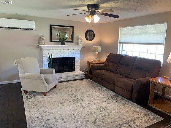 Move in Ready! This updated home offers Bamboo dark stain hardwood floors and wood burning fireplace in the living room. Kitchen has newer SS appliances, including fridge & oak cabinets w/pantry, Master with walk in closer and bonus closet, master bath with soaking tub and step in shower. Newer ductless heat pump, new concrete driveway and comes with washer and dryer. Garage has work bench and cabinets. Fenced back yard with covered patio and hot tub! Nice shed and covered dog run. LOW TAXES!!