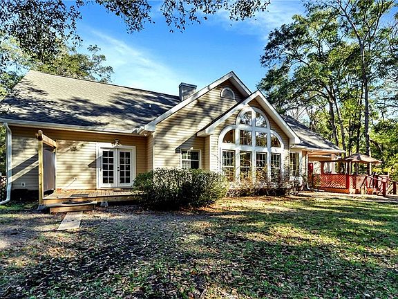 Country living with the convenience of being in town. This beautiful steel frame home has had over $60,000 in renovations in the past year and is priced below current appraised value. New hardwood floors (Cali Eucalyptus with a 50 year warranty), all new windows with a lifetime warranty, new gutters 6" with rain guard. The updated kitchen has solid oak handmade cabinets, granite, back splash, new stainless steel appliances with a 3 year warranty. The large master bedroom has new french doors leading to the new deck. The master bathroom has been totally renovated as well. The outdoor space is a great retreat. There's a covered tile patio and an open deck. The back yard has muscadine grape vines, orange & grapefruit trees and backs up to a creek. Be sure to ask your agent for a list of the additional improvements.